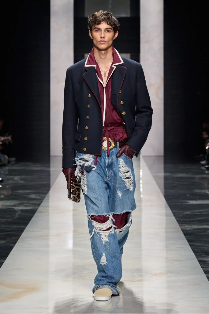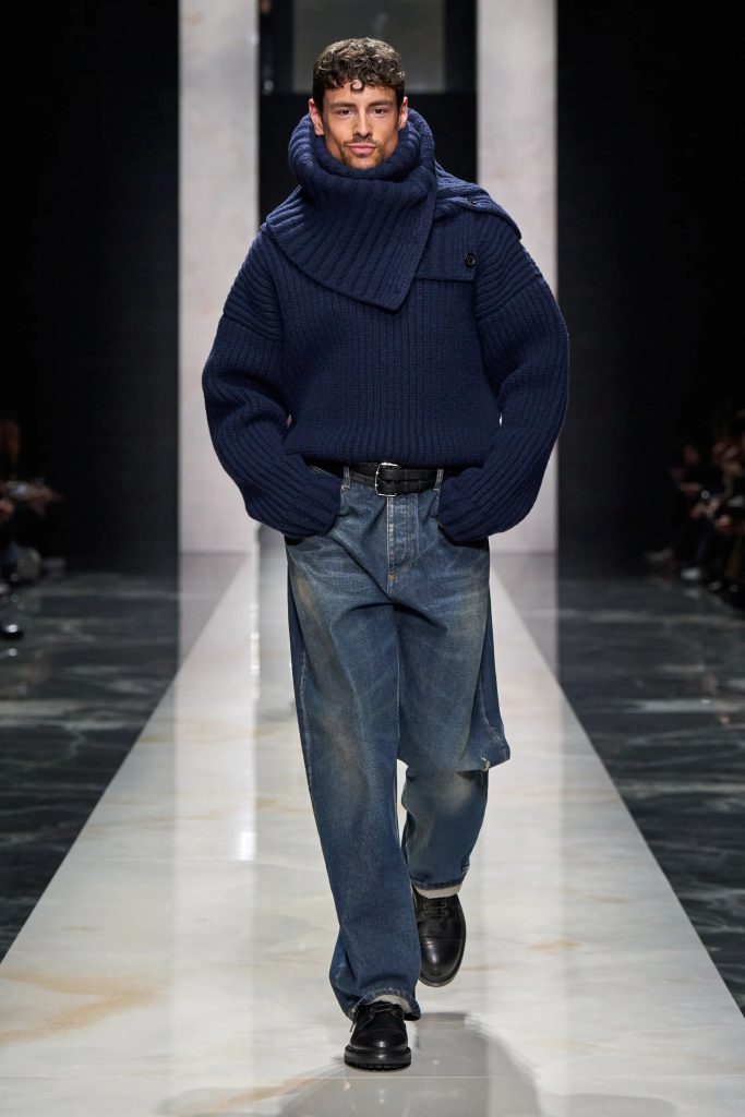 The overall men’s runway show emphasized individual expression, contrast between tailored and casual elements. And denim served as one of those casual touchpoints.