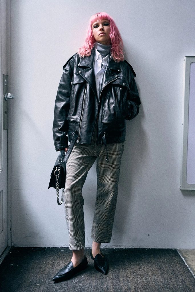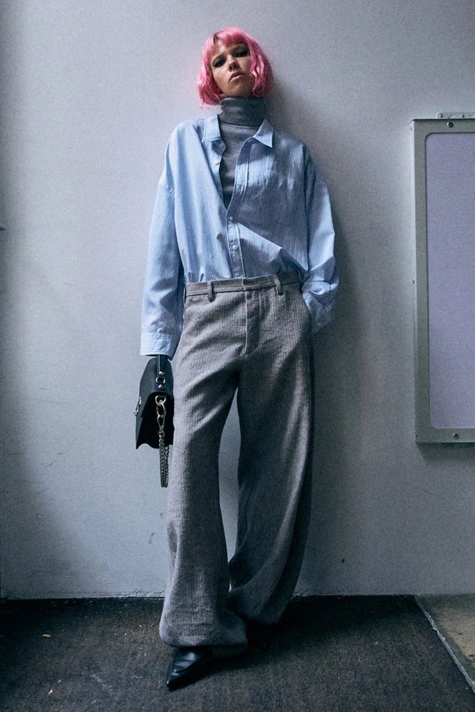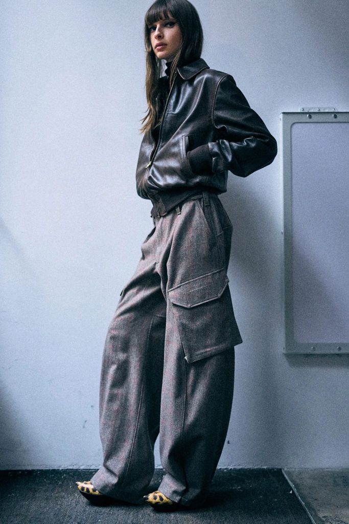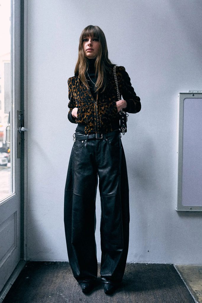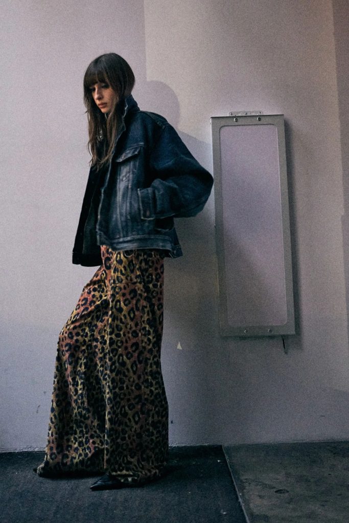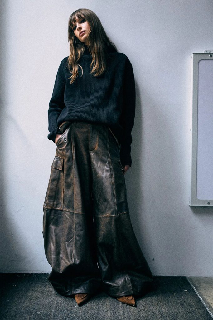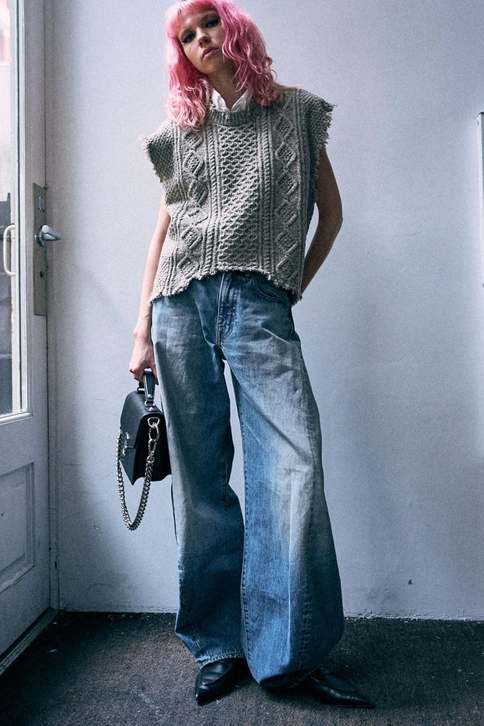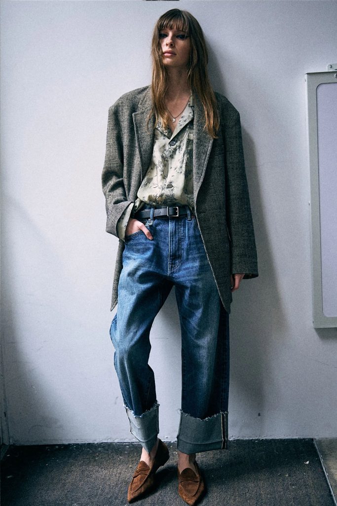 Overall, R13’s signature denim DNA still appears. Think lived-in layers, relaxed fits, and stacked hems that echo downtown style. But without being headless or loud. It’s woven into outfits with texture and attitude, worn with heavier boots, flannels, and tailored tops.