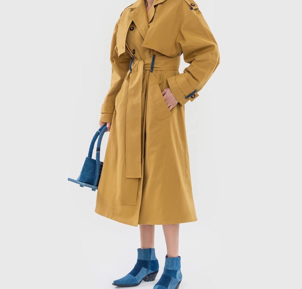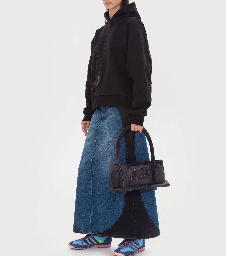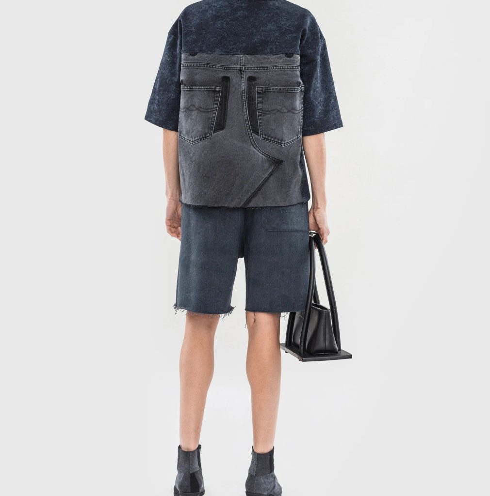 Ksenia Schnaider’s Pre-Fall 2025 collection named “Army of Me”, includes a back pocket design concept, where denim back pocket pieces or patches of vintage denim are re-used and repurposed onto non-denim garments. Think sweaters, trench coats, shirts, and also back onto new pairs of jeans.