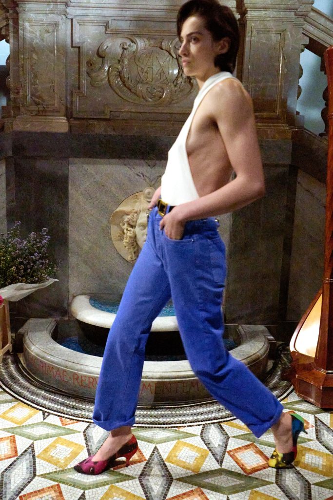 Denim that wasn’t just basic blue jeans but infused with brand identity like bold colors, Miami and Mediterranean energy, and “lived-in” attitude. As you will be able to see in our galleries bewlow, pieces include leather patches, prints, and more.